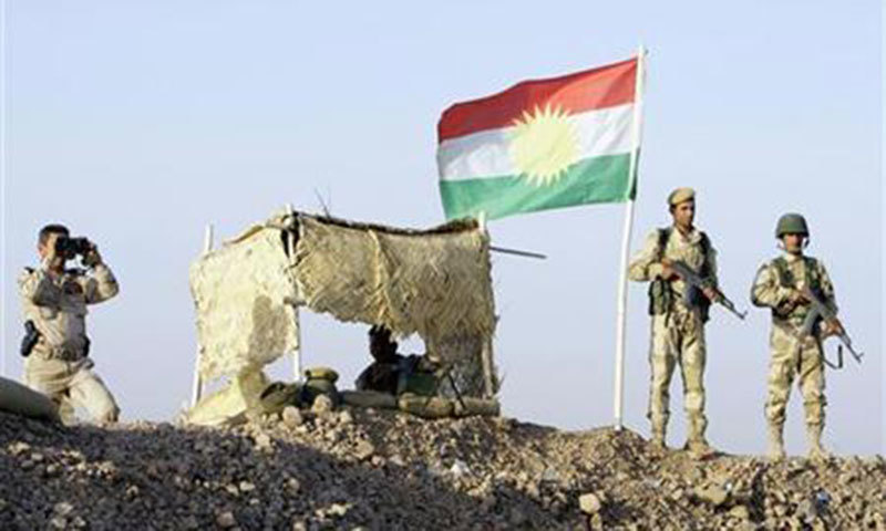 Kurdish Peshmerga soldiers look on at a guard post during a deployment in the area near the northern Iraqi border with Syria. — Reuters/File