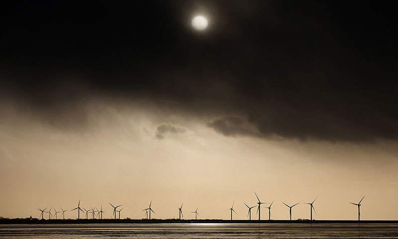 Picture taken in Klanxbuell of the sun through dark clouds in northern Germany.—AFP