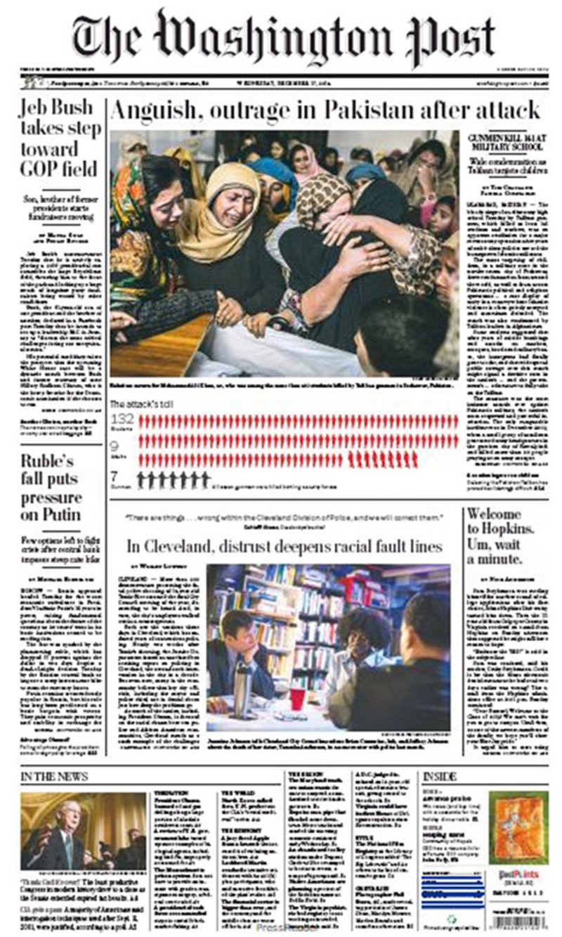 Front page: Peshawar carnage, inked in history